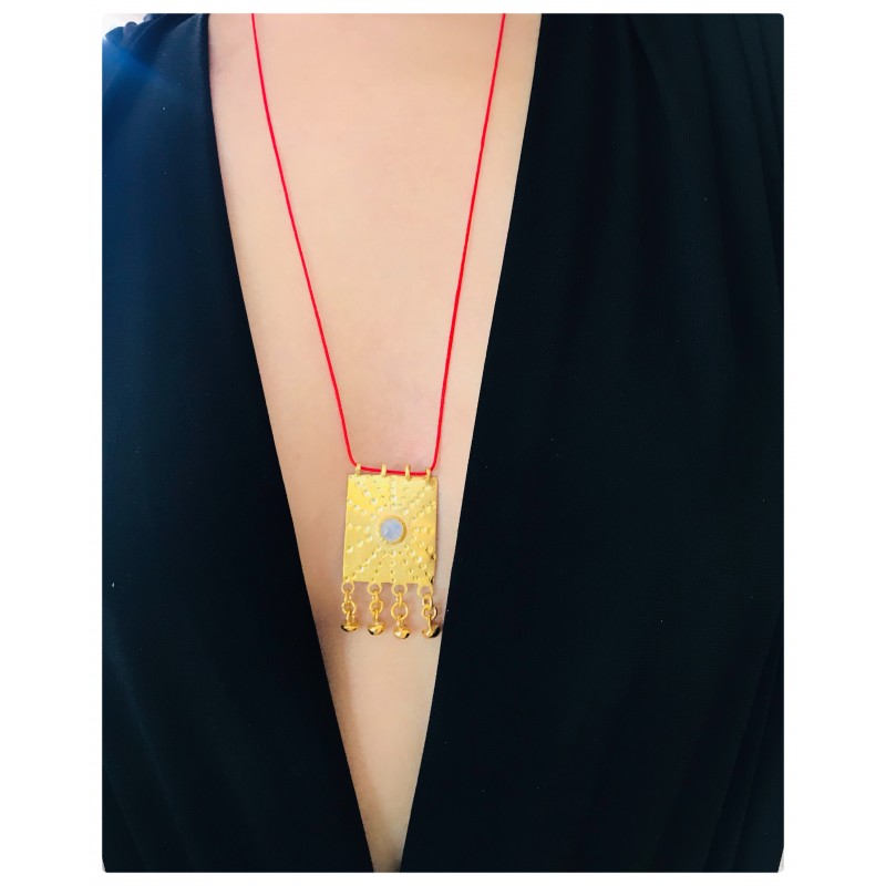 Ay Taşı kullanılmıştır. 925 Ayar gümüş 24 K Altın kaplamadır.