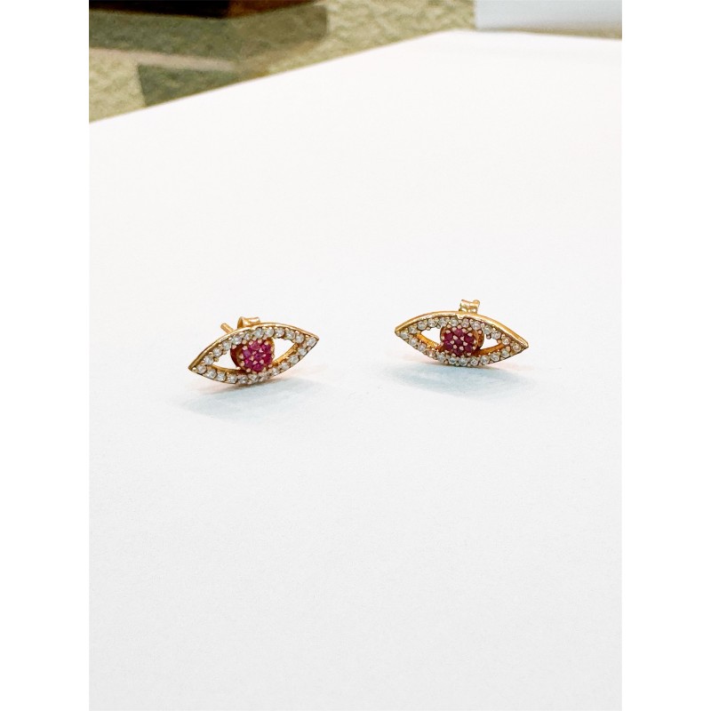 Yakut taşı ve zirkonyum taşı kullanılmıştır. 925 ayar gümüş rose kaplamadır. 1.5 x 0.5 cm ebatlarındadır.