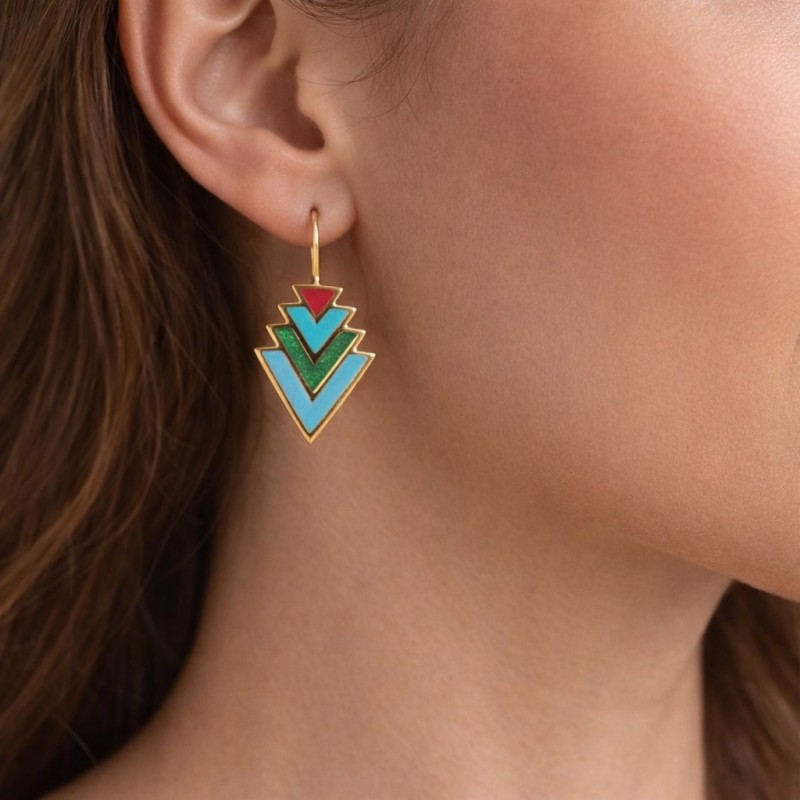 Prizma Küpe ; mavinin huzuru, yeşilin yenilenmesi , kırmızının cesareti ve turkuazın koruyucu enerjisi ile tek bir tasarımda buluşuyor.
